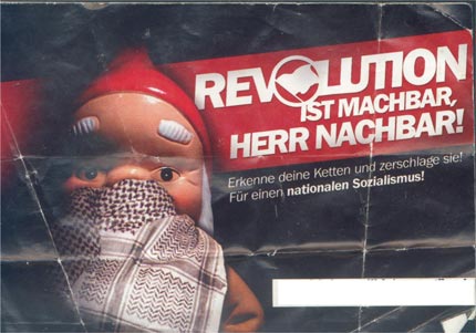 In Roßlau konnten mehrere neonazistische Sticks mit der Aufschrift "Revolution ist machbar, Herr Nachbar! Erkenne Deine Ketten und zerschlage sie! Für einen nationalen Sozialismus" festgestellt werden. Auf dem Aufkleber wird zudem auf die rechtsextreme Internetpräsentationen des "Kampfbundes Deutscher Sozialisten" und des "Nationalen Beobachters Delitzsch" hingewiesen.