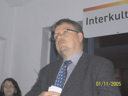 Der Berliner Politikwissenschaftler Gideon Botsch, gab dann in seinem Vortrag „Antisemitismus und Judenfeindschaft - jüngere Entwicklungen und aktuelle Gefahren“ einen kurzen Abriss über die historischen und aktuellen Erscheinungsformen des Antisemitismus. Dabei vergaß er zu Beginn nicht zu erwähnen, wo er den Vortrag hielt. „Moses Mendelssohn, der wichtigste jüdische Philosoph der Moderne“, so Botsch, komme schließlich aus der Stadt. Der Referent belegte an Beispielen die traurige Aktualität, die dem Kampf gegen Antisemitismus zu kommen müsse. Alleine im Oktober hätte es Dutzende antisemitische Schmierereien in Berlin gegeben. So wurde u. a. ein Mahnmal im Stadtteil Treptow mit Davidsternen besprüht. Für den 09. November 2005 prognostizierte Gideon Botsch weitere antisemitische Straftaten: „Für Berlin halte ich da jede Wette.“.