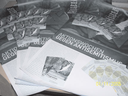 „Nach 2004 fand sich in Dessau das zweite Mal ein Vorbereitungskreis zusammen, um in der Stadt die Aktionswochen gegen Antisemitismus zu planen und durchzuführen. An den Aktionswochen, die maßgeblich von der Berliner Amadeu Antonio Stiftung initiiert wurden, nahmen in den Neuen Bundesländern weit über 40 Initiativen in mehr als 20 Städten teil.