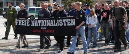 Im Magdeburg marschierten ca. 500 Neonazis unter dem Motto „Freie Menschen statt freie Märkte! Kapitalistische Normalitäten angreifen! – Alternativen schaffen!“ auf. Die Neonazidemo war Teil der extrem rechten Kampagne „Zukunft statt Globalisierung“, die insbesondere neonazistische Kameradschaften aus Ostdeutschland in den letzten Wochen vorantrieben. Dabei konnten die Rechten nahezu ungestört ihre antisemitisch tradierte Kapitalismuskritik in der Innenstadt Magdeburgs kund tun. Nennenswerte Proteste gab es nicht. Am Aufzug nahmen 8 Mitglieder und Symphatisanten des neonazistischen Personenzusammenschlusses "Freie Nationalisten Dessau/Anhalt" , unter ihnen Alexander W., Steffen M., Jörg S. und Thomas R., teil. Auch Neonazis der "Kameradschaft Köthen", so Steffen B., konnten identifiziert werden. Quelle: eigener Bericht