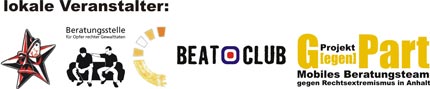 Infos/Kontakt zum Veranstalter: Beratungsstelle für Opfer rechter Gewalt im Multikulturellem Zentrum e. V. Marco Steckel Parkstr. 07 06847 Dessau-Roßlau Tel./Fax: 0340/ 66 12 39 5 opferberatung@datel-dessau.de