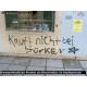 Vermutlich Neonazis besprühten einen Imbisswagen eines Döner-Verkäufers in der Nähe des Marktplatzes mit einer fremdenfeindlichen und antisemitischen Parole. Die auf dem Foto abgebildete Applikation soll vermutlich einen Davidstern symbolisieren und steht somit für eine antisemitische Motivation der Tat. Die historische Nähe zur nationalsozialistischen Kampagne .....
