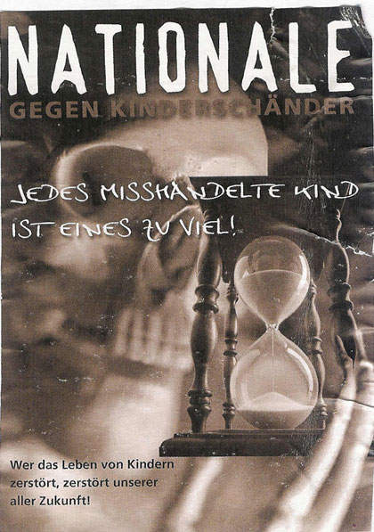 Im Dessauer Stadtteil West werden mindestens ein Dutzend neonazistische Aufkleber mit der Aufschrift "Nationale gegen Kinderschänder" festgestellt. Insbesondere im Umfeld der KITA "Märchenland" (Wohngebiet Schaftrift) wurden die Sticks von engagierten Antifaschisten entfernt. Nicht zum ersten mal versuchen Neonazis aus der Region, mit dem Thema Kindesmißbrauch rechts-populistische Stimmungen aufzugreifen und zu verstärken.