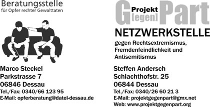 „Diese unverminderte Gewalt auf der Strasse zeigt, wie wichtig es ist Projekte gegen Rechts, gerade in Ostdeutschland, langfristig zu fördern“, sagt Steffen Andersch vom Projekt gegenPart.