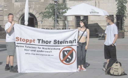 Bereits Ende Mai diesen Jahres forderte das Alternative Jugendzentrums e. V. Dessau, der Förderverein Junger Musiker e. V., die Beratungsstelle für Opfer rechtsextremer Straf- und Gewalttaten, die Netzwerkstelle gegen Rechtsextremismus, Fremdenfeindlichkeit und Antisemitismus Dessau, der Verein Miteinander e. V., die Ausländerbeauftragte der Stadt Dessau und Mitglieder des Dessauer Bündnisses gegen Rechtsextremismus, den Betreiber des Dessauer Bekleidungsgeschäftes "Strong" öffentlich auf, alle Artikel der Marke "Thor Steinar" umgehend aus dem Sortiment zu nehmen. Die Marke "Thor Steinar" ist nicht nur durch völkische Symbolik mit NS-Bezug gekennzeichnet, sondern darüber hinaus äußerst attraktiv für Rechtsextremisten und Neonazis.
