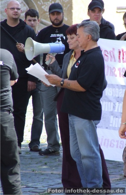 Im Verlauf des rechtsextremen Aufmarsches redete unter Anderem Carola Holz, NPD-Landesvorsitzende und NPD-Fraktionsvorsitzende im Kreistag von Anhalt-Bitterfeld. Weiterhin konnten Neonazis der „Freien Nationalisten Dessau“ und „Freie Nationalisten Aken/Elbe“ unter den Aufzugsteilnehmern identifiziert werden.