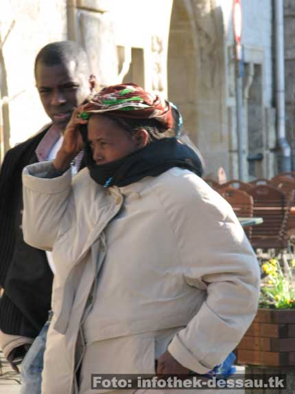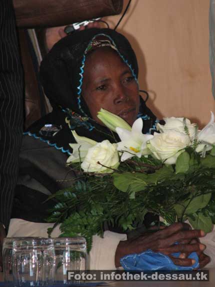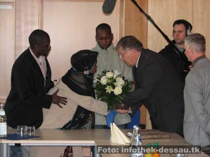 Dessaus amtierender Oberbürgermeister Karl Gröger hat 26. März 2007 Mariama Djombo Diallo im Rathaus empfangen. Die Mutter des Asylbewerbes Oury Jalloh, der am 07. Januar 2005 unter bisher ungeklärten Umständen in einer Gewahrsamszelle des Dessauer Polizeireviers verbrannte (mehr dazu hier...), weilt zur Zeit in der Stadt, um an der am 27. März beginnenden Hauptverhandlung gegen zwei Polizeibeamte als Nebenklägerin teilzunehmen.