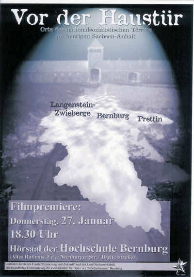 Das Konzentrations- und Vernichtungslager Auschwitz symbolisiert heute die nationalsozialistische Terror- und Vernichtungspolitik, die an unzähligen Orten in Europa durchgeführt wurde. Jugendliche aus Wittenberg, Bernburg und Halberstadt haben sich mit Unterstützung des Alternativen Jugendzentrums Dessau auf Spurensuche in ihrem unmittelbaren Lebensumfeld begeben und in drei Filmbeiträgen Orte des nationalsozialistischen Terrors im heutigen Sachsen-Anhalt dokumentiert.