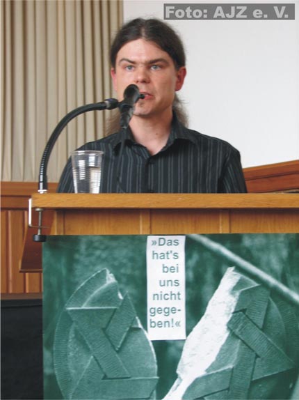 Der Landespolitiker spannte schließlich einen Bogen zur sachen-anhaltischen Gegenwart: „In der Negierung und deshalb fehlenden Aufarbeitung von Antisemitismus in der damaligen DDR ist auch eine wesentliche Ursache für die heute auch in Sachsen-Anhalt bestehenden antisemitistischen, rechtsextremistischen und rassistischen Tendenzen zu sehen. Antisemitismus ist auch heute noch ein wesentlicher Bestandteil des Rechtsextremismus. Sachsen-Anhalts Staatsanwaltschaften verzeichneten im Jahr 2006 leider erneut einen Anstieg von rechtsextremen Gewalttaten. Waren 2005 1.492 Strafverfahren mit rechtsextremistischem Hintergrund zu verzeichnen, so waren es im Jahre 2006 bereits 1.567 Verfahren.“