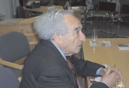 Ein recht unkonventionelles Zeitzeugengespräch mit dem Holocaustüberlebenden Max Mannheimer erlebten die 50 ZuhörerInnen am 10. Oktober 2005 in der Anhaltischen Landesbücherei Dessau. Max Mannheimer fesselte mit seiner Mischung aus biographischen Fakten, zeitgeschichtlichen Hintergründen und Betrachtungen des aktuellen Rechtsextremismus in der BRD, zweifellos den Saal. Die Veranstaltung fand im Rahmen der Reihe „Zeugnis ablegen bis zum letzten Tag…“ statt, die das Alternative Jugendzentrum Dessau (AJZ) im Oktober und November 2005 organisierte und in der bisher vier jüdische Überlebende des Holocaust in Dessau zu Gast waren. Die Veranstaltungsreihe findet Ende November mit Maria und Adam König, die in Halle und Wittenberg mit Jugendlichen sprechen werden, ihren Abschluss. Jana Müller (AJZ) verwies einleitend darauf, dass Max Mannheimer, der seit vielen Jahren Vorsitzender der Lagergemeinschaft Dachau ist, zum ersten Mal das Bundesland Sachsen-Anhalt besucht und Zeitzeugengespräche hier führt. Neben den Spuren jüdischen Lebens in Dessau, hatte der Maler Max Mannheimer (Künstlername: ben jacob) am Vormittag mit großer Begeisterung das Bauhaus besucht.