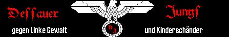 | 2003 Dessau, 18. Dezember 2003; Am Dessauer Hauptbahnhof fordert ein optisch der rechten Szene zuzuordnender Mann (eindeutig Symbolik an der Kleidung) einen alternativen Jugendlichen auf, seine Stiefel auszuziehen. Nach dem der Jugendliche dieses Ansinnen energisch zurück weißt, streckt der Neonazi die Hand zum "Hitlergruß" aus. Darauf hin stellt der Betroffene, bei Beamten des Bundesgrenzschutzes (BGS), Anzeige nach Paragraph 86a STGB (Verwendung von Kennzeichen verfassungswidriger Organisationen). Dessau, 01. Dezember 2003; Im Stadtteil Dessau-Nord wird in der Rabestraße/Ecke Wörlitzerstr. ein Plakat der neonazistischen NPD festgestellt. Auf der rechtsextremen Publikation ist im Detail zu lesen: "Zukunft und Arbeit für ein besseres Deutschland NPD- Die Nationalen". Halle(Saale)/Dessau, 29. November 2003; Insgesamt 500 Neonazis marschieren in Halle gegen die Ausstellung "Verbrechen der Wehrmacht - Dimension des Vernichtungskrieges 1941-1944" auf. Unter den rechtsextremen DemonstrationsteilnehmerInnen können auch 15 Mitglieder und SympathisantInnen der Dessauer Neonazigruppe "Freie Nationalisten Dessau/Anhalt", u. a. nachweislich Clemens W. und Steffen V., lokalisiert werden.