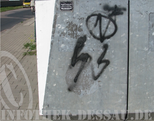 In der Nacht zum 09. September 2008 brachten mutmaßlich Neonazis mit Sprühfarbe rechtsextreme Parolen und Kennzeichen verfassungsfeindlicher Organisationen auf die Aussenwand einer Turnhalle in der Steneschen Straße auf. Über etwa 20 Meter zogen sich der Schriftzug "Dessau bleibt national, daneben waren der rechtsextreme Zahlencode "88" und ein Hakenkreuz aufgesprüht.