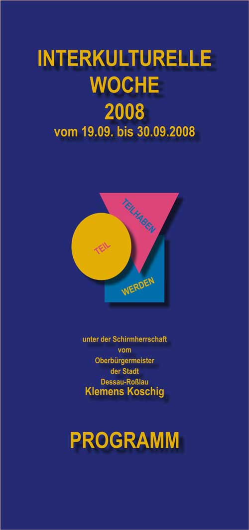 SCHULE OHNE RASSISMUS – SCHULE MIT COURAGEbundesweite Kampagne eröffnet am 22. September 2008 feierlich lokal verortete Servicestelle in Dessau-Roßlau // Projekt vom Lokalen Aktionsplan für Demokratie und Toleranz der Stadt gefördert 350.000 Kinder und Jugendliche besuchen in Deutschland eine "Schule ohne Rassismus – Schule mit Courage". Weit über 450 Bildungseinrichtungen gehören mittlerweile zu dem bundesweiten Netzwerk. Um den Titel "Schule ohne Rassismus" tragen zu können, sollten sich 70 % der SchülerInnen und LehrerInnen zum dahinterstehenden Konzept bekennen (mehr dazu hier...). Dieser hohe Anspruch und die damit einhergehenden Verpflichtungen waren sicherlich ein Grund, warum es in Sachsen-Anhalt bisher so wenige Schulen gab, die sich an der basisdemokratischen Kampagne aktiv beteiligten. Vor allem in diesem Jahr ist es jedoch gelungen, hier eine Trendwende herbeizuführen. Neben dem engagierten Wirken der Landeskoordination (mehr dazu hier...) haben vor allem lokal verortete Servicestellen zu dieser positiven Entwicklung beigetragen. Immerhin über 20 Schulen im Bundesland haben sich bisher dem Netzwerk angeschlossen.Weiterlesen... Interwork 2008Interkulturelle Werkstatt Dessau schreibt innovatives Qualifikationsprogramm für Jugendliche aus// Teilnehmer werden vom 13. bis 17. Oktober 2008 zu TrainerInnen für Antirassimus und interkulturelle Kompetenz ausgebildet In einem einwöchigen Training lernt Ihr das Handwerkszeug, um selbst Seminare zum Thema Interkulturelle Kompetenz und Antirassismus zu geben. Zunächst für andere Jugendliche, später auch für Erwachsene. Ihr erwerbt damit die Voraussetzung, an einem Folgeprojekt 2009 teilzunehmen, bei dem Ihr Teil eines Referenten/innen-Pools werdet. Dabei werden Aufträge vermittelt und Ihr könnt Euer Wissen gegen Bezahlung weitergeben.Weiterlesen.. Dessopolis 2008 Das Kinderstadt-Projekt auch in Dessau-Roßlau