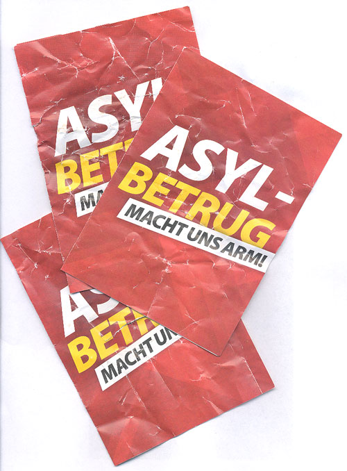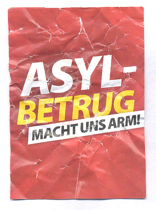 Im Stadtteil Dessau-Nord kommt es zur Verteilung von Flugblättern der NPD. Unter anderem im Briefkasten des Alternativen Jugendzentrums Dessau befanden sich rassistische Flyer mit dem Titel "Asylbetrug macht uns arm" mit denen Sozialneid geschürt und rassistische Resentiments in der "Mitte" der Gesellschaft verstärkt werden sollen.