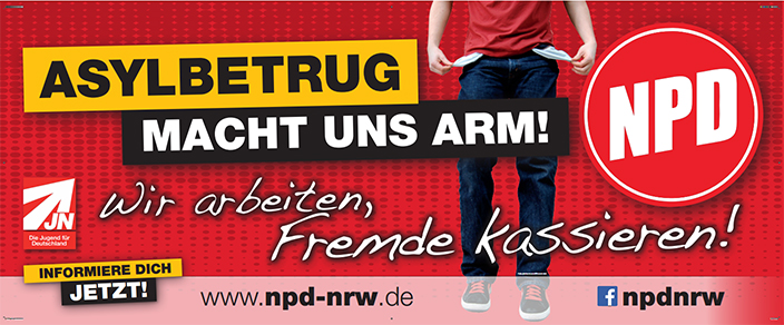 Ein weiteres Mal führte der NPD Kriesverband Wittenberg einen Infostand unter dem Motto "Asylbetrug macht uns arm" durch (mehr dazu hier...), am 01. August wurde dieser in Jessen abgehalten. Die NPD inszeniert sich dabei als vermeintlicher "Tabubrecher", um gegen Asylsuchende zu hetzen und so zu versuchen, an vorhandene Ressentiments in der Bevölkerung anzuknüpfen und in Hinblick auf die Landtagswahlen am 13.03.2016 möglicherweise politisches Kapital aus der Unterbringung von Asylsuchenden zu schlagen.