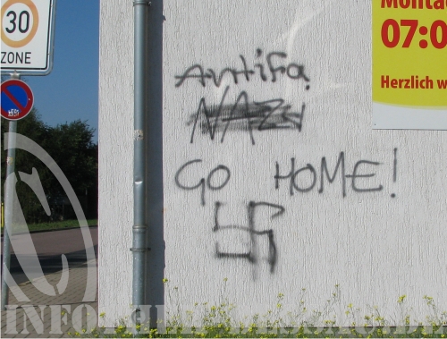 Die Schulleitung, zu der die Turnhalle gehört hat Anzeige wegen Sachbeschädigung und Verwendung verfassungswidriger Kennzeichen erstattet. Vermutlich in der selben Nacht wurden, nicht weit entfernt, weitere Sprühereien mit verfassungswidrigem Inhalt angebracht. In der Kreuzbergstraße sprühten Unbekannte mit dem selbem Farbton ein Hakenkreuz und eine doppelte Sig-Rune auf Hauswand und Müllkontainer. Anzeigen wegen Sachbeschädigung und Verwendung von Kennzeichen verfassungswidriger Organisationen wurde auch hier erstattet. Der polizeiliche Staatsschutz ermittelt in diesen Fällen.