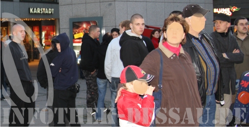 ![]() ![]() Sehr häufig versuchen Neonazis soziale Themen zu besetzten, um mit einfachen mehrheitsfähigen Antworten Sympathien in der Mitte der Gesellschaft zu gewinnen. Nach Hinweisen auf die politischen Hintergründe der teilnehmenden Gruppe an die Veranstalter, grenzten sich die bis zu hundert Kundgebungsteilnehmer räumlich und verbalvon den Neonazis ab.