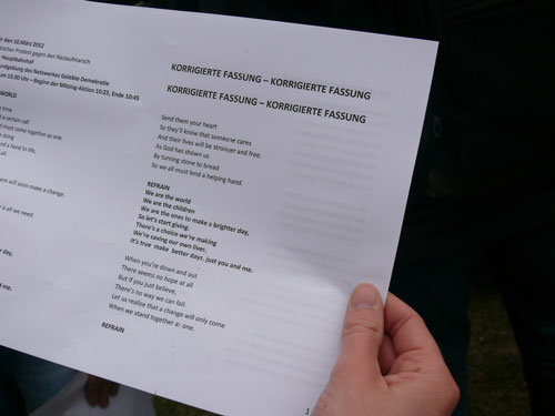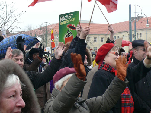 Das sieht auch Steffi Lemke, politische Bundesgeschäftsführerin von Bündnis 90/Die Grünen, wenig später so und findet deutliche Worte: „Dieser 21. Januar 2012 war uns eine Lehre. Nie wieder darf ein Nazimob unwidersprochen durch die Stadt ziehen.“