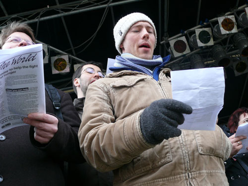 Und während die Hip Hop- und Reggae-Crew „Sally Hohnstein“ eher den habituellen Nerv der jungen Protestgeneration mit Sprechgesangssequenzen wie „Wir brauchen keine Nazis in Dessau und nirgendwo“ trifft, präsentiert die Rezitatorin Antje Tietz Kurt Tucholskys Gedicht „Küsst die Faschisten, wo Ihr sie trefft“.