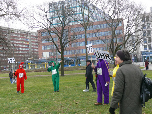 Gehören in der Stadt zum Protestinventar: Die Teletubbies