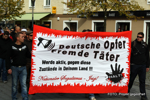 Im Vorfeld der angemeldeten Demonstration „Deutsche Opfer – Fremde Täter“, die von der lokalen Neonaziszene veranstaltet wird, kam es in der Region zu einer „Werbeaktion“ für diese Demonstration. Dabei wurde rechtsextreme Propaganda an einigen Orten verteilt. Zusätzlich ließen es sich lokale Neonazi-Aktivisten nicht nehmen, ein Transparent, welches offensichtlich für die Demonstration erstellt wurde, auf einem Hinterhof zur Probe zu halten.