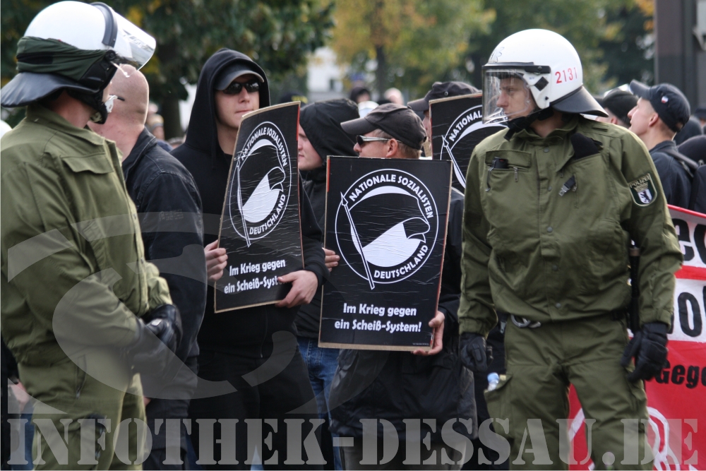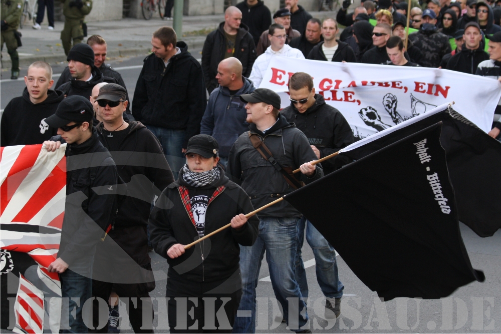 10. Oktober 2009 / Berlin / Anhalt-Bitterfeld An einem Aufmarsch von mehr als 800 Neonazis und Rechtsextremisten in Berlin nehmen u.a. auch TeilnehmerInnen aus dem Landkreis Anhalt-Bitterfeld teil. Nachdem es in der Nacht zum 04. Oktober 2009 in Berlin/ Schönweide zu einem versuchten Brandanschlag auf die von der rechten Szene genutzte Kneipe „Zum Henker“ kam, demonstrierten die Neonazis unter dem Motto „Vom nationalen Widerstand zum nationalen Angriff“ am 10. Oktober 2009 über 800 Neonazis durch Berlin-Mitte und Friedrichshain.