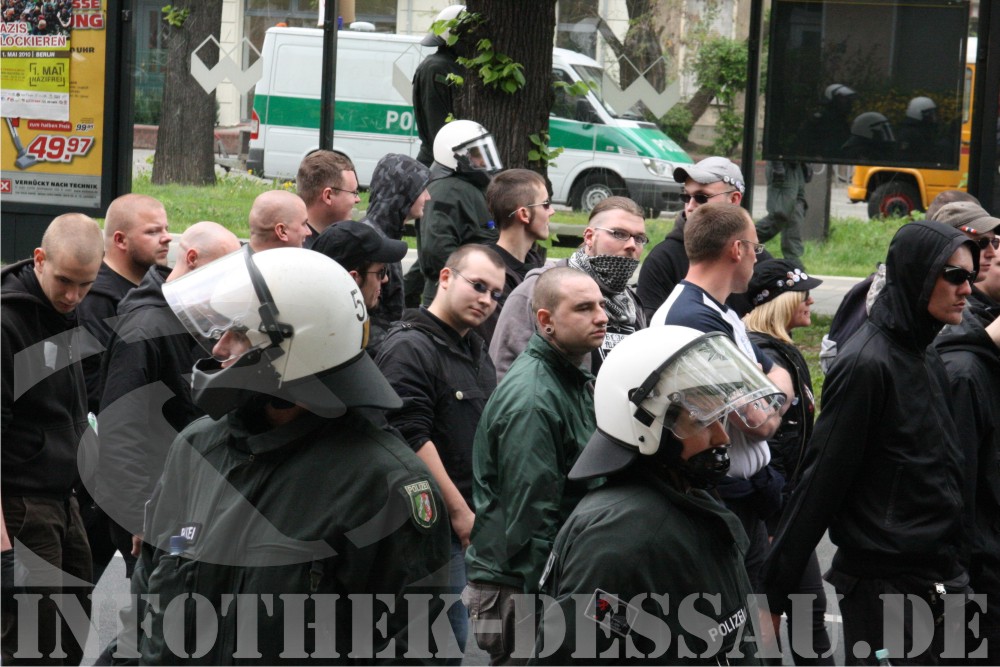 01. Mai 2010 / Berlin / Köthen / Gräfenhainichen Unter den etwa 650 Teilnehmern einer Demonstration der Berliner NPD am 01.Mai 2010 nahmen im Berliner Stadtteil Prenzlauer Berg u.a. auch Neonazis aus Köthen (Anhalt-Bitterfeld) und Gräfenhainichen (LK Wittenberg) teil. Trotz mehrerer rechter Demonstrationen an diesem Tag im gesamten Bundesgebiet, gingen ein Bündnis von Neonazigegnern sowie der Innensenator im Vorfeld von bis zu 3.000 teilnehmende Neonazis aus.