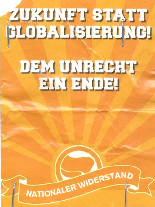 25. Oktober 2008 / Dessau-Roßlau In der Innenstadt konnten mehrere rechtsextreme Sticks festgestellt werden, die anschließend von engagierten Bürgern entfernt wurden. Zuvor hatten Zeugen beobachtet, wie eine ca. 10köpfige Gruppe Rechtsextremisten aus dem Umfeld der Neonazikameradschaft "Freie Nationalisten Dessau-Anhalt" mit rechten Propagandaträger (Fahnen) zum Hauptbahnhof der Stadt zogen, vermutlich um zu einem Neonaziaufmarsch nach Leipzig zu fahren. Die rechten Propadaträger, auf denen sich die Neonazis einmal mehr als Opfer stilisieren und demokratische Entscheidungsprozesse als "bewusste politische Lüge" diffarmieren, verweisen zudem alle auf ein "nationale Infoportal" im Internet. Auf dieser im Ausland gehosteten Homepage wird u.a. für Hatecore (eine Spielart des Rechtsrock) geworben und darüber hinaus Werbung für einen extrem rechten Shopping-Versand im Internet publiziert. ![]() ![]() Quelle: eigener Bericht |