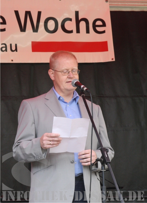 Die Eröffnungsfeier im Dessau-Roßlauer Stadtpark wird durch Grußworte des diesjährigen Schirmherren, der Generalintendant des Anhaltischen Theaters Andrè Bücker, eingeleitet. Gerade als „Neu-Dessauer“ freut sich Bücker ganz besonders, hier als Schirmherr und Botschafter für Toleranz und Weltoffenheit gefragt zu sein. Sich gegen Fremdenfeindlichkeit zu engagieren ist für den Schirmherren ein sehr wichtiges gesellschaftliches Anliegen, nicht erst seitdem er in Halberstadt mit seinem Theaterensemble praktische Erfahrungen mit rechtsextremer Gewalt sammeln musste. Eine Gruppe Neonazis hatte im Sommer 2007 Mitglieder des Halberstädter Städtebundtheaters grundlos auf offener Straße angegriffen und teils erheblich verletzt. Die gerufene Polizei ließ die noch anwesenden Täter damals wieder laufen.