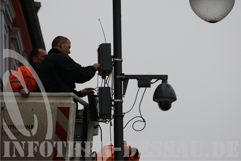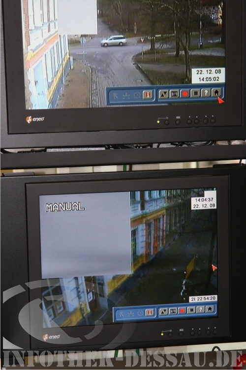 Seit dem 16. Dezember 2008 hat die Polizeidirektion Sachsen-Anhalt Ost Kameras zur Videoüberwachung im Bereich der Schlachthofstraße 25, dem Vereinsobjekt des Alternativen Jugendzentrum Dessau e.V., installiert. Infolge mehrerer rechtsextremer Übergriffe auf das Objekt in den zurückliegenden Monaten, hat die Ordnungsbehörde nun die technischen Voraussetzungen geschaffen, um jeglichen Publikumsverkehr im Bereich der Schlachthofstraße 25 präventiv zu dokumentieren. Zwei Kameras zeichnen nun in siebentägiger Dauerschleife jede Regung auf den zwei angrenzenden Straßenzügen auf.