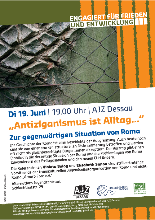 Tag der Erinnerung - 12 Jahre nach dem Mord an Alberto AdrianoEinladung zur Gedenkveranstaltung am 11. Juni im Stadtpark Dessau ![]() Zahlreiche Vereine, Initiativen und Institutionen laden für den 11. Juni 2012 in den Stadtpark Dessau ein, um gemeinsam an Alberto Adriano zu erinnern. Alberto Adriano war am 11. Juni 2000 eben an diesem Ort, dem Stadtpark von Dessau, von Neonazis überfallen und brutal zusammengeschlagen worden. Wenige Tage später starb Adriano an seinen schweren Verletzungen. Der brutale Mord an dem Familienvater, der als Vertragsarbeiter in die ehemalige DDR gekommen war, sorgte weltweit für Entsetzen. Aktueller Antisemitismus - Bestandsaufnahme und PräventionsansätzeFachtagung am 21. Juni 2012 in Magdeburg ![]() Was ist eigentlich und wie begegnen wir aktuellen Formen des Antisemitismus? - Das sind kurz gefasst die Fragen, mit denen sich die Fachtagung befassen will. Die Auseinandersetzung mit Antisemitismus konzentrierte sich in der Vergangenheit häufig auf rechtsextreme Strukturen einerseits, auf Zugewanderte mit muslimischem Hintergrund andererseits. Aktuelle wissenschaftliche Analysen stellen jedoch klar: Antisemitismus ist nicht auf politische Ränder oder Minderheitengruppen begrenzt. Er existiert in den verschiedensten Formen - auch jenseits rechtsextremer und offen den Judenhass propagierender Milieus. Antisemitismus gehört ebenso wie Rassismus zu den Kernmerkmalen des Rechtsextremismus, aber nicht jede antisemitische Einstellung deutet auf ein rechtsextremes Weltbild. Der aktuelle Bericht des unabhängigen Expertenkreises Antisemitismus vom November 201 1 stellt fest, dass eine ,,tiefe Verankerung antisemitischer Stereotype und Wahrnehmungsmuster in der Alltagskultur" vorherrscht. Laut Expertenbericht bestehen bei etwa 20 Prozent der in Deutschland lebenden Bevölkerung ,,latente" antisemitische Einstellungen. Dies decke sich auch mit den Erfahrungen der in Deutschland lebenden Juden, die mit ,,Ausgrenzung, Diffamierung, Beschimpfung und Boykottierung" konfrontiert werden. Demokratieerklärung für rechtswidrig erklärtIntegrationsbeauftragte Sachsen-Anhalts begrüßt die Dresdener Gerichtsentscheidung „Antiziganismus ist Alltag…“ Zur Situation von Roma Roma sind EU-Bürger und Bürgerinnen. Dennoch sind sie von einer starken strukturellen Diskriminierung betroffen und werden oft nicht als gleichberechtigte MitbürgerInnen akzeptiert. Vorurteile und Stereotype sind weit verbreitet und werden in den Medien, in Politik und Gesellschaft nur selten kritisiert und in Frage gestellt. Die Stigmatisierung von Roma und Antiziganismus sind einige der wichtigsten Ursachen der sozialen Ausgrenzung. Rassismus und Antiziganismus sind ein Problem der ganzen Gesellschaft. Die Geschichte der Roma ist eine Geschichte der Ausgrenzung, die bis heute anhält. In mehreren europäischen Ländern wurden in den vergangenen Jahren zahlreiche Roma in Hassverbrechen getötet, Roma Kinder werden in segregierte Schulen geschickt. Nicht zuletzt geraten sie in den Fokus rechter Parteien, die die Verbreitung antiziganistischer Ressentiments forcieren.