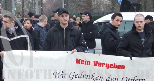 Am 13.November 2008 begann die Hauptverhandlung vor dem Jugendschöffengericht des Amtsgerichts Dessau-Roßlau gegen drei Angeklagte. In fünf Anklagepunkten werden den 16- bis 20-Jährigen mehrere Körperverletzungen, Bedrohungen sowie Beleidigungen gegenüber alternativen Jugendlichen zur Last gelegt. Mehrere bekannte Rechtsextremisten der hiesigen Kameradschaftsszene begleiten den Prozess im Publikum zur moralischen Unterstützung der Angeklagten. Laut Anklageschrift der Staatsanwaltschaft Dessau-Roßlau sollen Robert Z., Dennis L. und Kevin A., in wechselnder Täterschaft, die Straftaten zwischen August 2007 und Mai diesen Jahres verübt haben.
