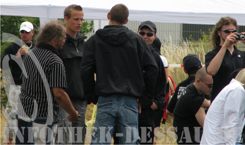 Zeuge Siegmar Z. (1.v.li.) und Angeklagter Robert Z. (3.v.li.) auf dem NPD-Sommerfest am 05.Juli 2008 in Sangerhausen (mehr dazu hier...)