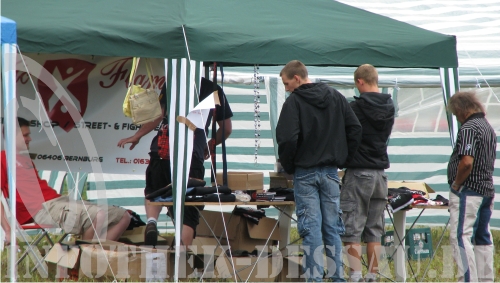 Robert Z. (2.v.re.) und Zeuge Siegmar Z. (1.v.re.) beim NPD-Sommerfest (mehr dazu hier...) am Verkaufsstand des Neonaziladens "Nordic Flame" (mehr dazu hier...) am 05.Juli 2008 in Sangerhausen