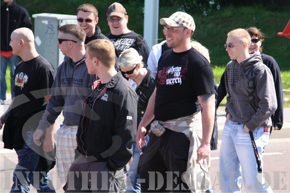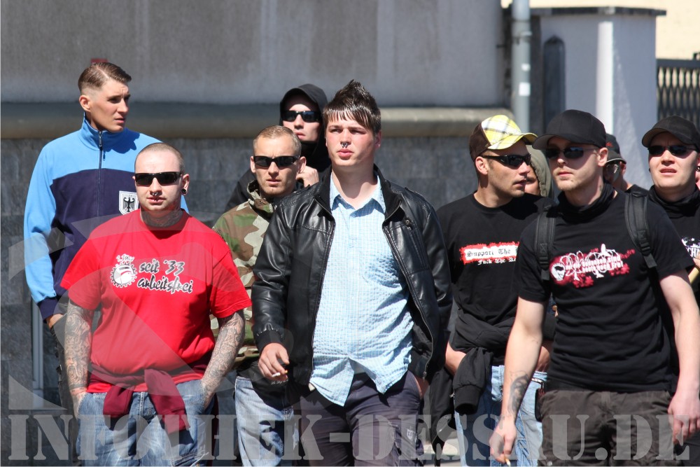 01. Mai 2011 / Halle und Region Anhalt Beim bundesweit größten Aufmarsch der sogenannten freien Kameradschaften anlässlich des 1. Mai 2011 versammelten sich rund 1000 Neonazis in Halle. Unter den Teilnehmern hatten sich auch zahlreiche Kameradschaftsaktivisten aus der Region eingefunden. Unter dem Motto "Zukunft durch Arbeit, Fremdarbeiter stoppen" versuchten die Neonazis durch die Stadt zu ziehen. Durch erhebliche Proteste von Gegendemonstranten leitete die Polizei den Aufzug mehrfach um und verkürzte die Route erheblich.