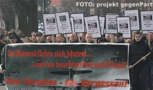 Alljährlich im August das gleiche Bild: Rechtsextremisten und Neonazis marschieren ohne Erlaubnis durch die Straßen und platzieren ihre menschenfeindlichen Parolen im öffentlichen Raum. Der Anlass für die braunen Aktionen ist dabei der Todestag des Hitlerstellvertreters Rudolf Hess. Der verurteilte Kriegsverbrecher gilt in der Szene als als Märtyer- und Identifikationsfigur. Nun sind am 28. Juli 2011 im Dessauer Stadtteil Süd mehrere Dutzend illegal angebrachte Plakate aufgetaucht, die das Konterfei des Nationalsozialisten zeigen. Die zuständigen Polizeidienststellen haben umgehend reagiert und die Entfernung der Propagandaträger veranlasst, die offenbar in einer nächtlichen Aktion auf Wertstoffcontainern und Stromkästen angebracht wurden.