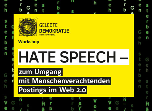 HATE SPEECH – zum Umgang mit Menschenverachtenden Postings im Web 2.0 Workshop am 20. November 2015 in der Volkshochschule Dessau |