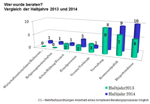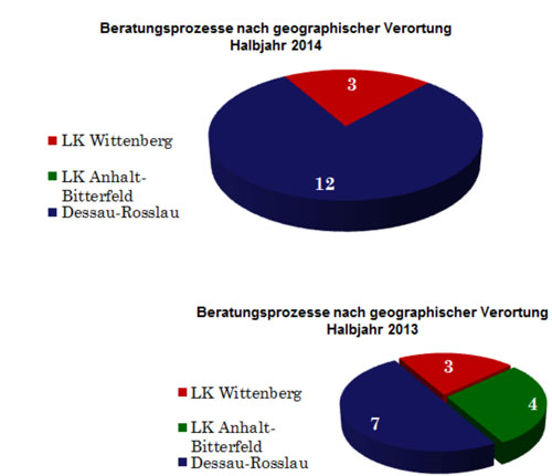 Das MBT Anhalt hat 8 Verwaltungen (im Vergleichszeitraum 2013: 9) beraten und zudem insgesamt 10 Prozesse in Bürgerbündnissen begleitet (Vergleichszeitraum 2013: 6).
