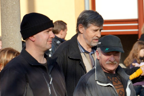 Der Neonazi Mario A. (Bildmitte mit Sonnenbrille) trat als rechtsextremer Liedermacher "Oiram" bei einem Neonaziaufmarsch am 08. März 2014 in Dessau-Roßlau auf (mehr dazu hier...)