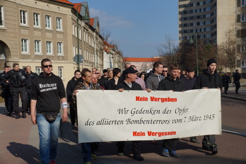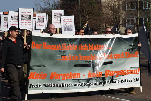 Zentrales und zugleich identitätsstiftenden Ereignis der regionalen Neonazisszene bleibt der sogenannte Trauermarsch, der anlässlich der Bombardierung Dessaus alljährlich im März stattfindet. Am 08. März 2013 haben die Rechtsextremisten aus dem Umfeld der „Freien Nationalisten Dessau und Anhalt-Bitterfeld“ indes versucht, mit einer aggressiv vorgetragenen Mobilisierung einem zweiten Aufmarsch gegen "Asylanten" in der Doppelstadt zu etablieren. Im Gegensatz zur habituellen Zurückhaltung, die die Szene beim Trauermarsch zeigt, trat bei der extrem rechten Demonstration "Asylflut stoppen" eine rassistische Motivation und die Hetze gegen Flüchtlinge und Migrant_innen offen zu Tage.