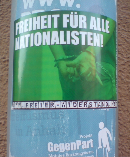 Bei den Propagandaträgern handelt es sich vorwiegend um Exemplare die auf die Neonaziportale "Widerstand.info" und "Freier-Widerstand.net" verweisen. In den vergangenen Wochen wurden gerade auch im Stadtteil Nord immer wieder rechtsextreme Aufkleber von aufmerksamen Bürgern festgestellt und entfernt (mehr dazu hier...) (und hier...).