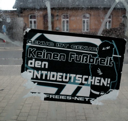 26. April 2012 / Bad Schmiedeberg (Landkreis Wittenberg) Ein Mitarbeiter des Mobilen Beratungsteam Anhalt stellt in der Nähe des Bahnhofs in Bad Schmiedeberg zahlreiche rechtsextreme Aufkleber fest. Diese wurden an Laternen und den Buswartehäuschen verklebt. Die Motive und verwendeten Parolen sind dem Umfeld der freien Kameradschaften zuzurechnen. Zahlreiche der rechtsextremen Propagandasticker verweisen auf Kampagnen des "Freien Netzes" und auf die Website "Aktion Widerstand". In den Parolen wird unter anderem in Anlehnung an den Nationalsozialismus die Durchsetzung eines nationalen Sozialismus gefordert.