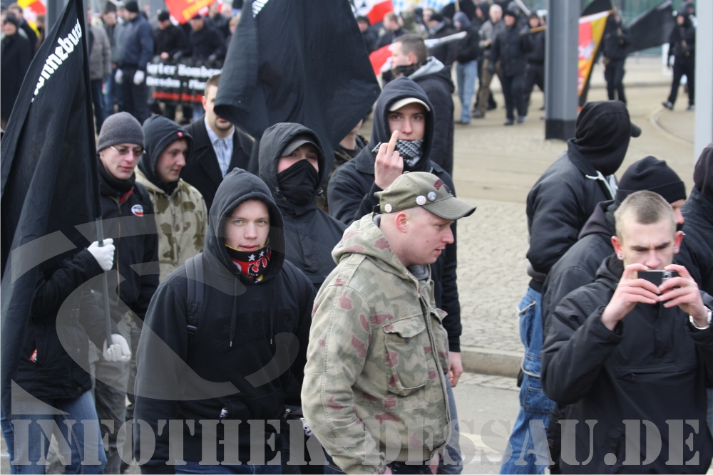 14. Februar 2009 / Dresden / Region Anhalt An dem europaweit größten Neonaziaufmarsch am 14. Februar 2009 in der sächsischen Landeshauptstadt, nahmen unter den 6000 bis 7000 rechtsextremen Teilnehmern u.a. auch zahlreiche rechte Aktivisten der Region Anhalt teil. Seit 1998 finden aus Anlass der kriegsnotwendigen Bombardierungen deutscher Städte Demonstrationen der rechten Szene statt.