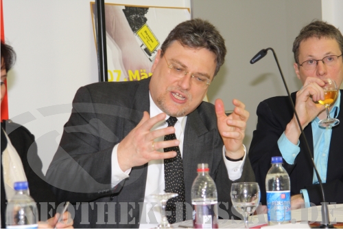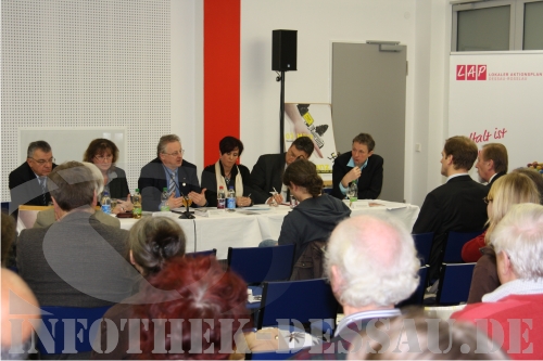 „Die Bombardierung der Zivilbevölkerung war ein Verbrechen. Diese Verbrechen haben aber die Deutschen erfunden.“Moderatorin Lichtblau konfrontiert das Podium mit harten Zahlen und Fakten. Innenminister Hövelmann habe erst heute verkündet, dass die rechten Straftaten im Land erneut um fast ein Viertel gestiegen sind und damit das hohe Niveau aus dem Jahre 2006 erneut erreicht haben. Die Beratungsstelle für Opfer rechter Gewalt habe für 2008 zudem bilanziert, dass es in der Region Anhalt insgesamt 42 rechte Gewalttaten gegeben habe, davon allein 25 in Dessau-Roßlau (mehr dazu hier...).