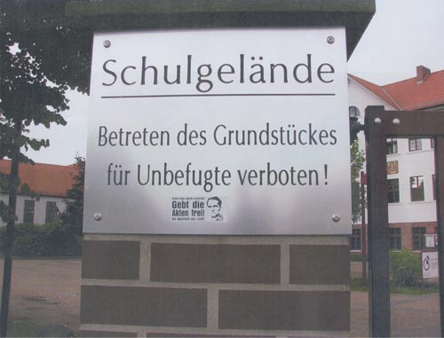 20. August 2010 / Dessau-Roßlau Im Beisein des NS-Überlebenden Ernersto Kroch (mehr dazu hier) stellen MitarbeiterInnen des Alternativen Jugendzentrums mehrere rechtsextreme Progandaträger im Umfeld eines Dessauer Gymnasiums fest. Auf den Sticks wird der NS-Kriegsverbrecher Rudolf Hess glorifiziert und in verschwörungstheoretischer Manier eine "Freigabe der Akten" gefordert. Erst vor wenigen Tagen kam es im Stadtgebiet und der Region zu Propagandastraftaten im Zusammenhang mit dem Todestag des Hitlerstellvertreters (mehr dazu hier...). ![]() Quelle: eigener Bericht |