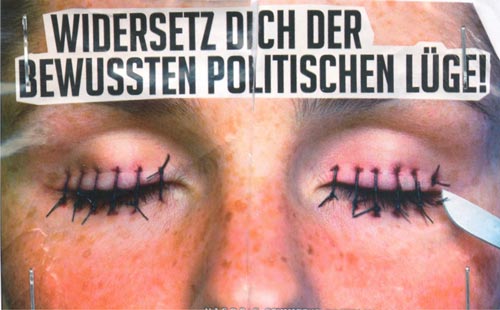 Die rechten Propadaträger, auf denen sich die Neonazis einmal mehr als Opfer stilisieren und demokratische Entscheidungsprozesse als "bewusste politische Lüge" diffarmieren, verweisen zudem alle auf ein "nationale Infoportal" im Internet. Auf dieser im Ausland gehosteten Homepage wird u.a. für Hatecore (eine Spielart des Rechtsrock) geworben und darüber hinaus Werbung für einen extrem rechten Shopping-Versand im Internet publiziert.
