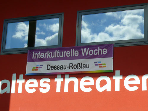 Der Herbst zeigt sich für die rund 80 Gäste am 22. Oktober 2012 von seiner goldenen Seite. Schon lange bevor es sich die ersten Besucher auf den Bierzeltgarnituren bequem machen, dröhnt aus den Boxen des „Rodeboy Soundsystems“ vor dem Alten Theater der Reggae-Sound, flutschen vom Plattenteller in schöner Regelmäßigkeit Ska-Klänge. Vom Barbecue wehen Rauchschwaden hinüber und bunte Pappfiguren säumen den Vorbühnenbereich. Fast 30 Vereine, Institutionen und Initiativen beteiligen sich in diesem Jahr an der bundesweiten Veranstaltungsreihe in der Doppelstadt, die diesmal unter dem Motto „Herzlich Willkommen – Wer immer Du bist“ über die Bühne geht. Das zeigt, dass die Sensibilität für interkulturelle Diskurse und Kompetenzen zwischen Elbe und Mulde in den letzten Jahren gestiegen ist. Doch eitel Sonnenschein herrscht auch in Dessau-Roßlau noch lange nicht. Gibt es doch mit der stärkeren Ausprägung einer Willkommenskultur und der dringend zu führenden Debatten um (alltags) rassistische Phänomene auf den hiesigen Straßen und Plätzen noch Baustellen, die das demokratische Gemeinwesen weiterhin beschäftigen werden.