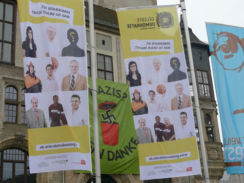 Gesicht zeigen und damit gemeinsam für eine freie, offene und vielfältige Stadt eintreten: Diese Prämisse eint am 13. Oktober 2012 viele Initiativen, Vereine und Institutionen. Das Netzwerk GELEBTE DEMOKRATIE (mehr dazu hier...) ruft alle engagierten Bürgerinnen und Bürger zu einem bunten und phantasievollen Protest gegen einen Aufmarsch von Neonazis auf.