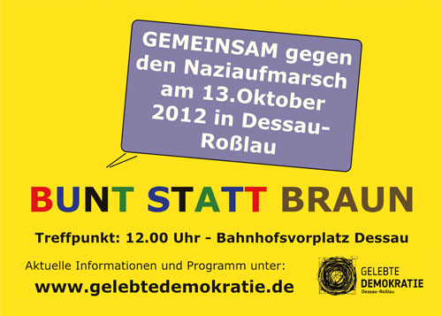Netzwerk ruft zu friedlichen Protesten gegen Neonazi-Aufmarsch am 13. Oktober 2012 in Dessau-Roßlau auf