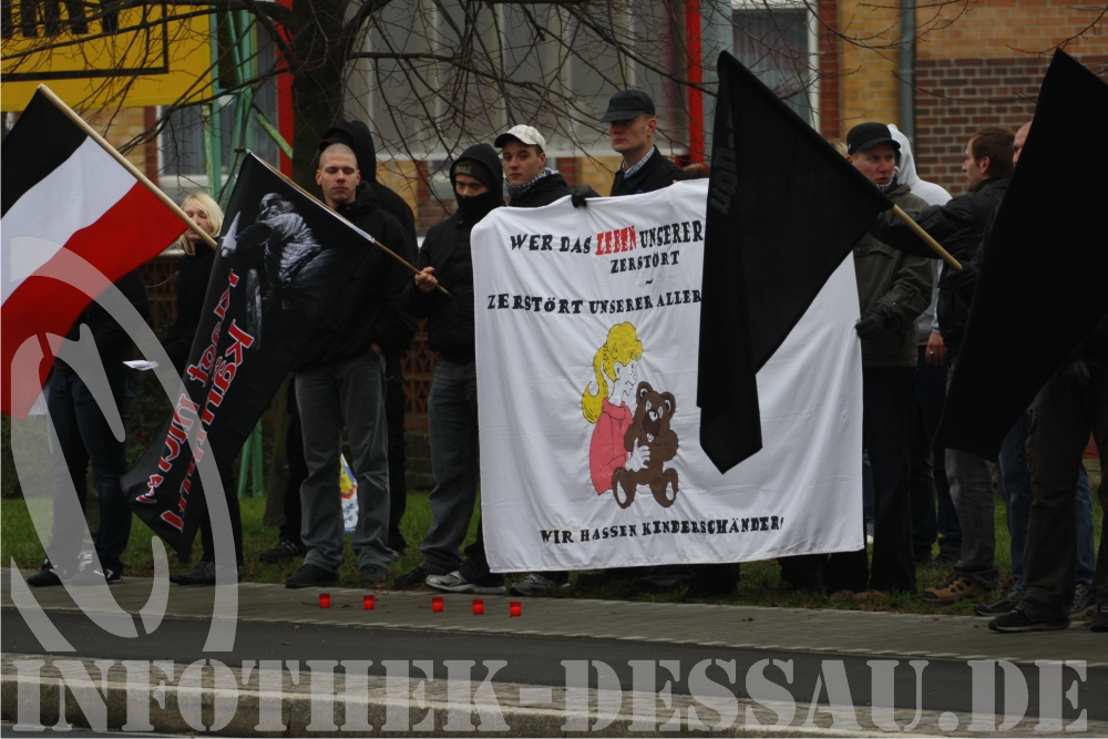 29. November 2008 / Bitterfeld-Wolfen Ab 11.00 Uhr versammelten sich Neonazis aus Dessau-Roßlau, dem Landkreis Wittenberg und aus Anhalt-Bitterfeld im Stadtgebiet, um eine zweistündige eine Kundgebung abzuhalten. Die 25 bis 30 Rechtsextremisten um die ehemalige NPD-Landesvorsitzende Carola Holz versuchten dabei, populistisch das Thema Kindesmißbrauch aufzugreifen. Die verteilten Flugschriften fanden derweil nicht viele Abnehmer.